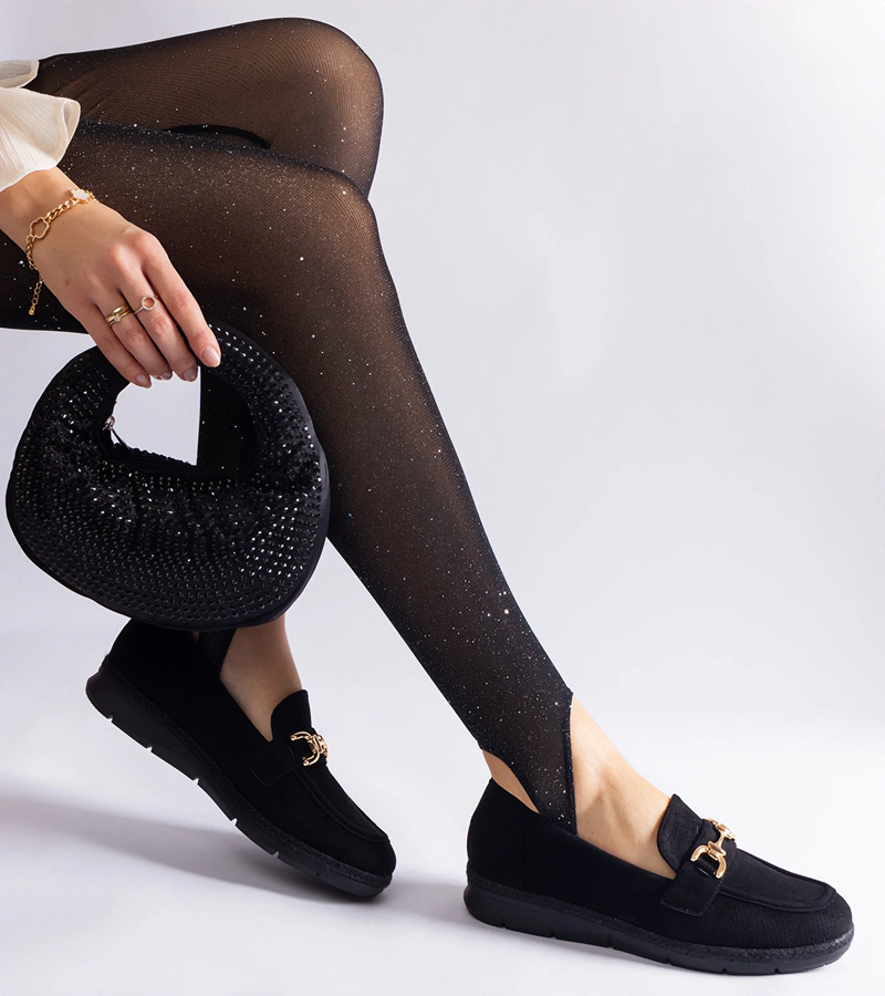 Černé dámské mokasíny s průřezy z eko semiše Sandoval
