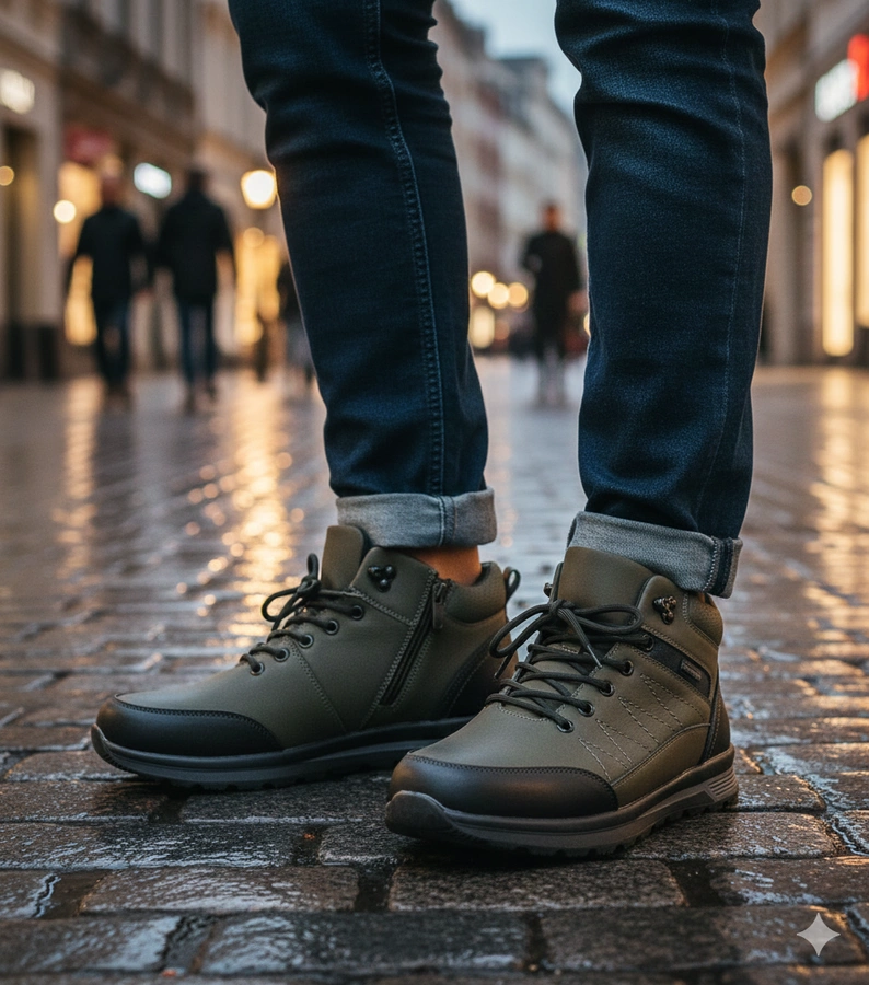 Tmavě béžové šněrovací boty na platformě zateplené kožíškem Briana