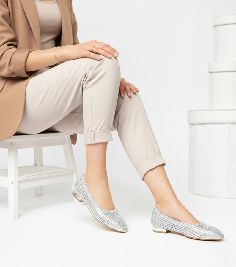 Stříbrné ažurové baleríny na nízkém podpatku Simone