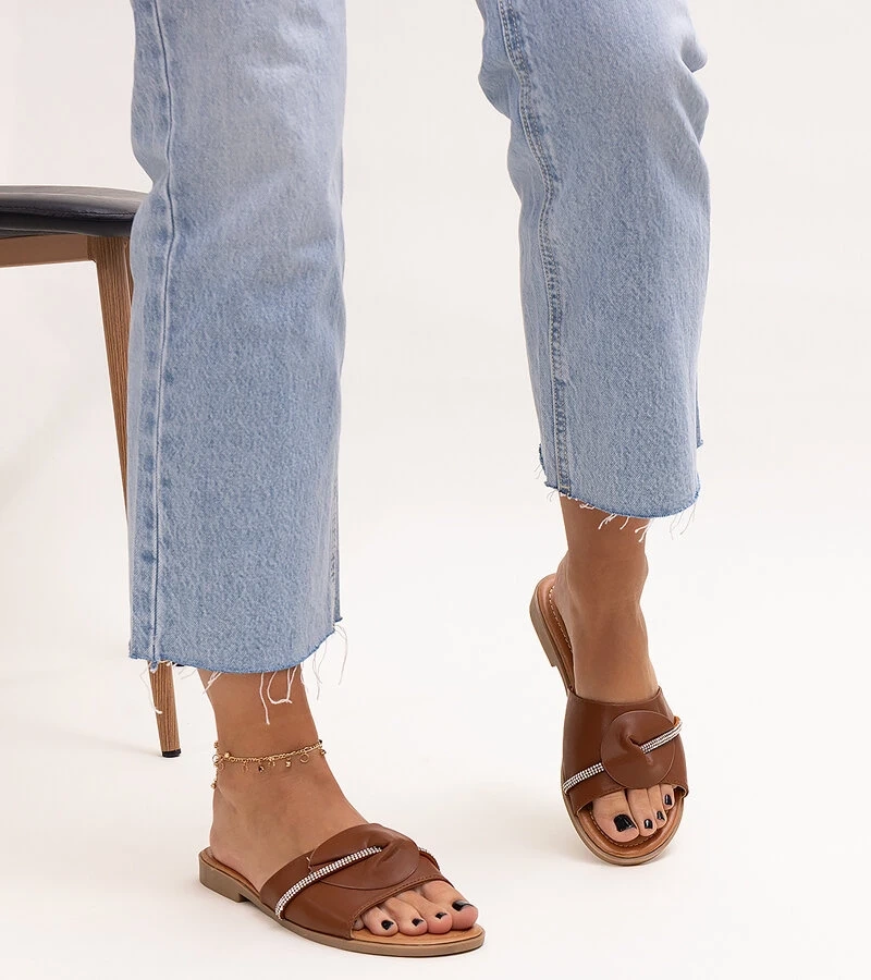 Hnědé pantofle s dekorativní sponou od Rochaela
