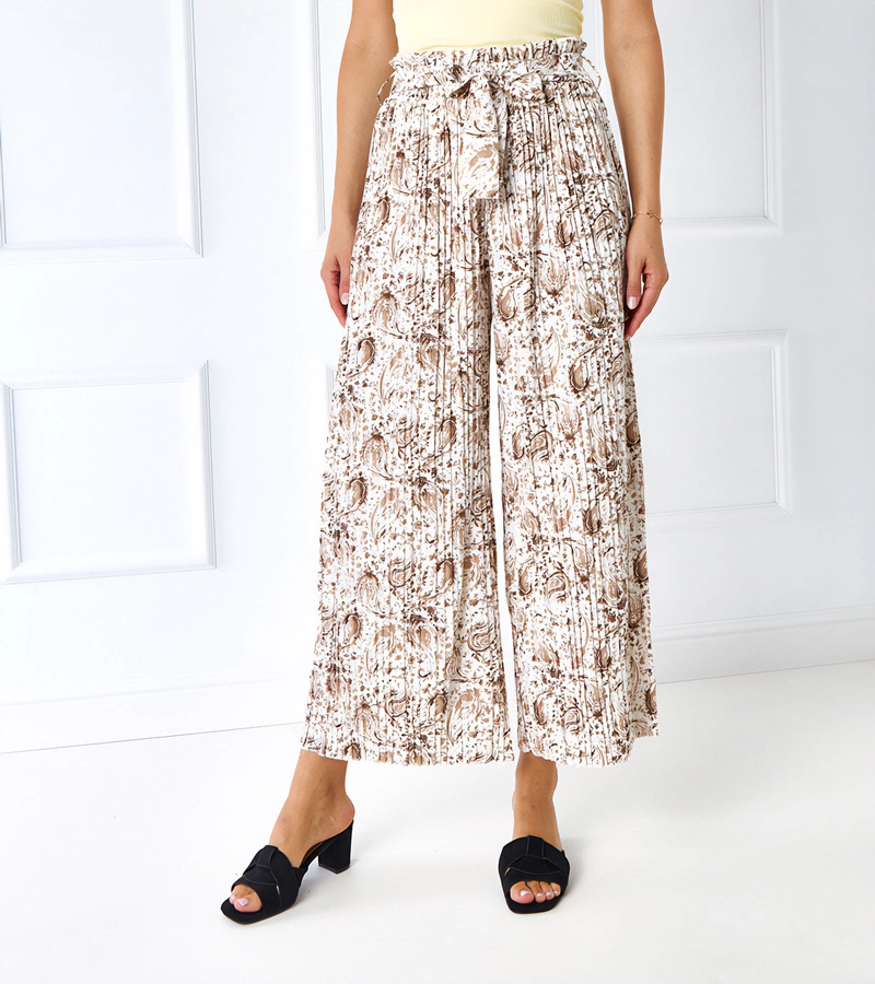 Dámské bílo-béžové široké plisované kalhoty Latifa