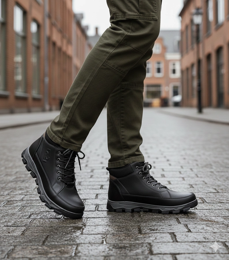 Černé pánské zateplené trapery s kožíškem na platformě Paul