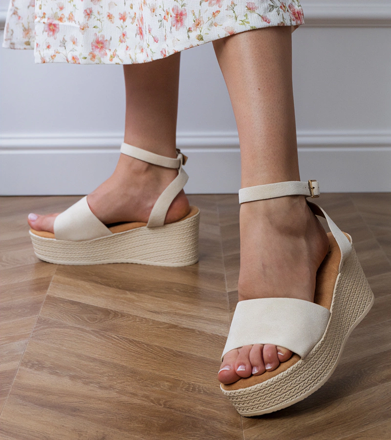 Tmavě béžové sandály na platformě z eko semiše Ganra