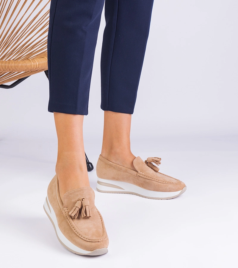 Béžové dámské mokasíny na platformě se zdobením Selerina