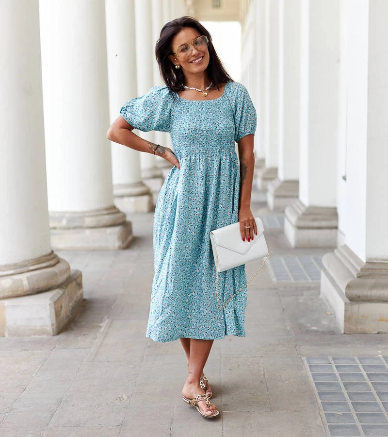 Růžové květinové midi šaty Castiglione 7108 GREEN
