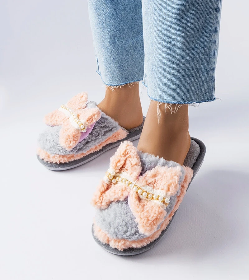 Šedě-růžové pantofle s mašličkou Bow