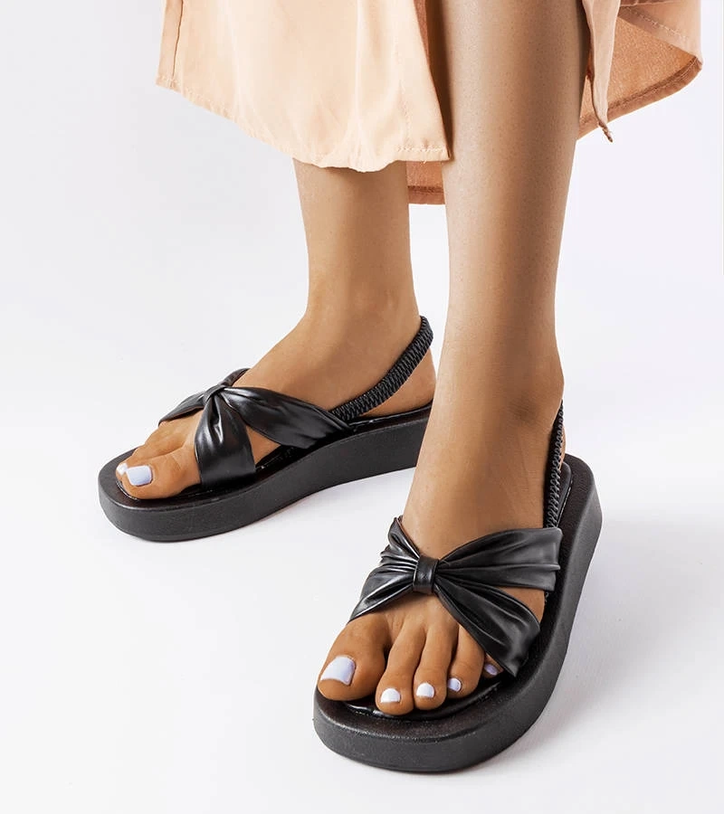 Černé žabky zdobené srdíčky V2000-2 BLACK