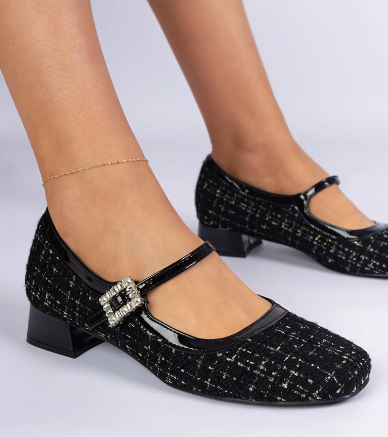 Černé lodičky s textilním zakončením a kamínky Mersitta