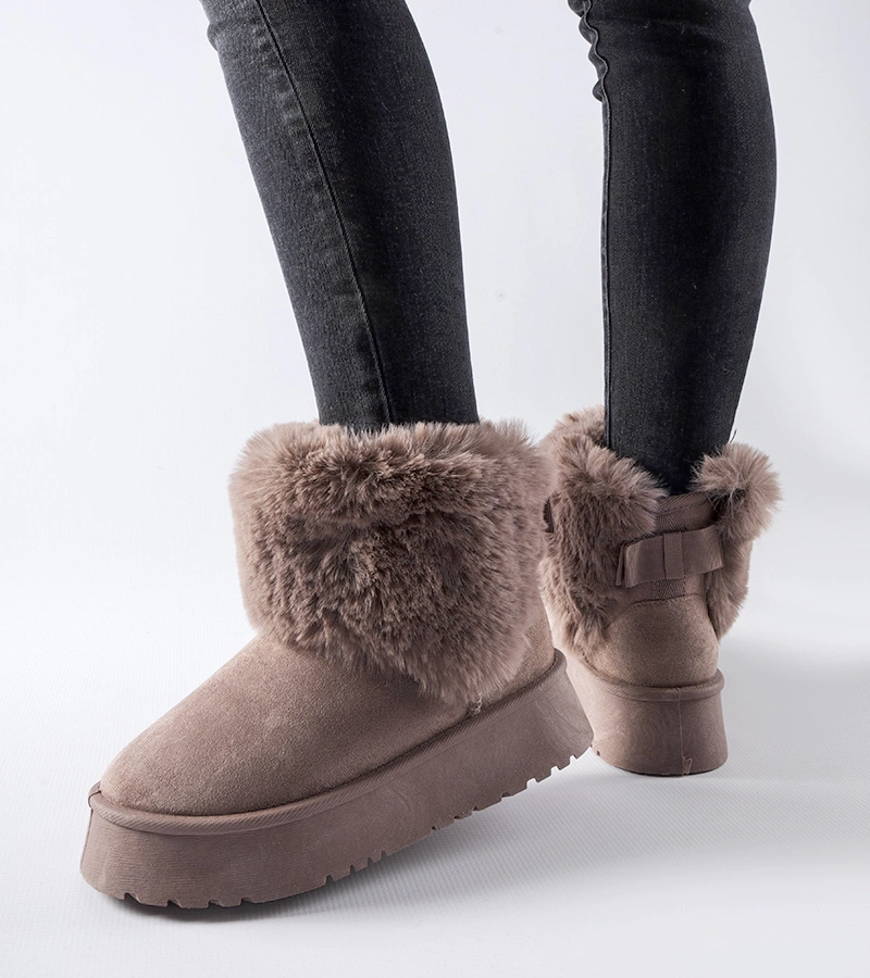 Hnědé sněhule zdobené kožešinkou Adelfia