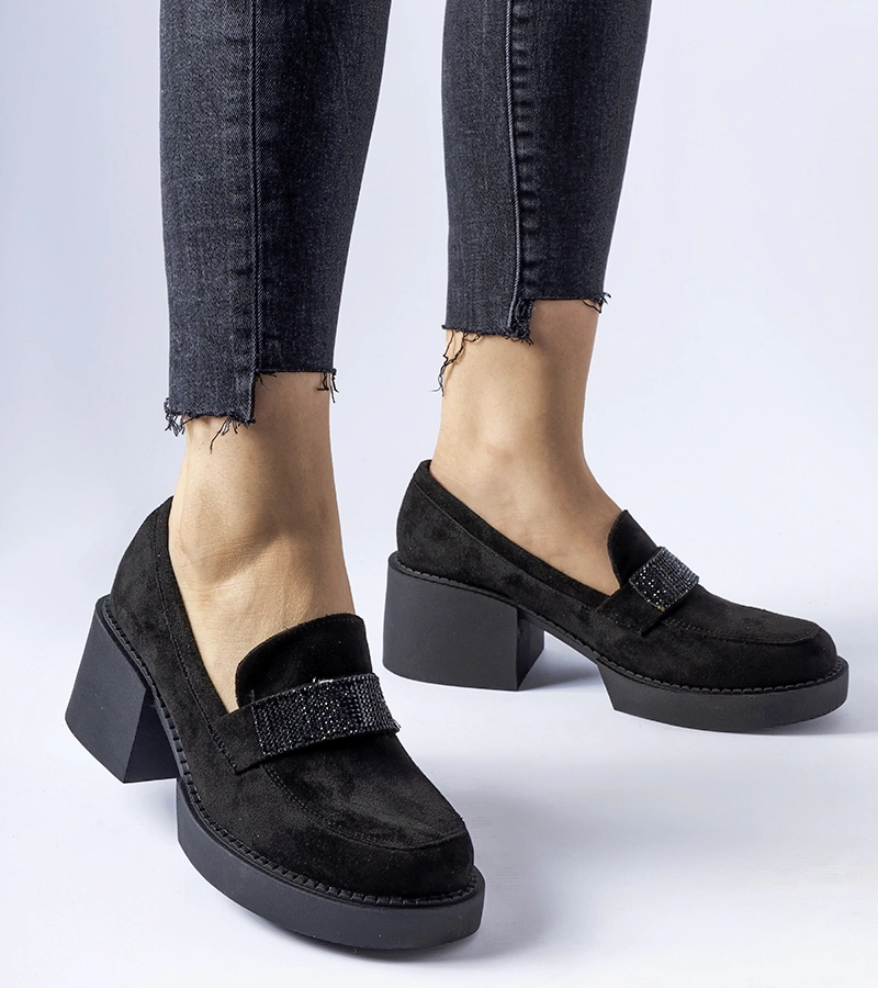 Černé izolované klasické kotníkové botky s podpatkem Caio