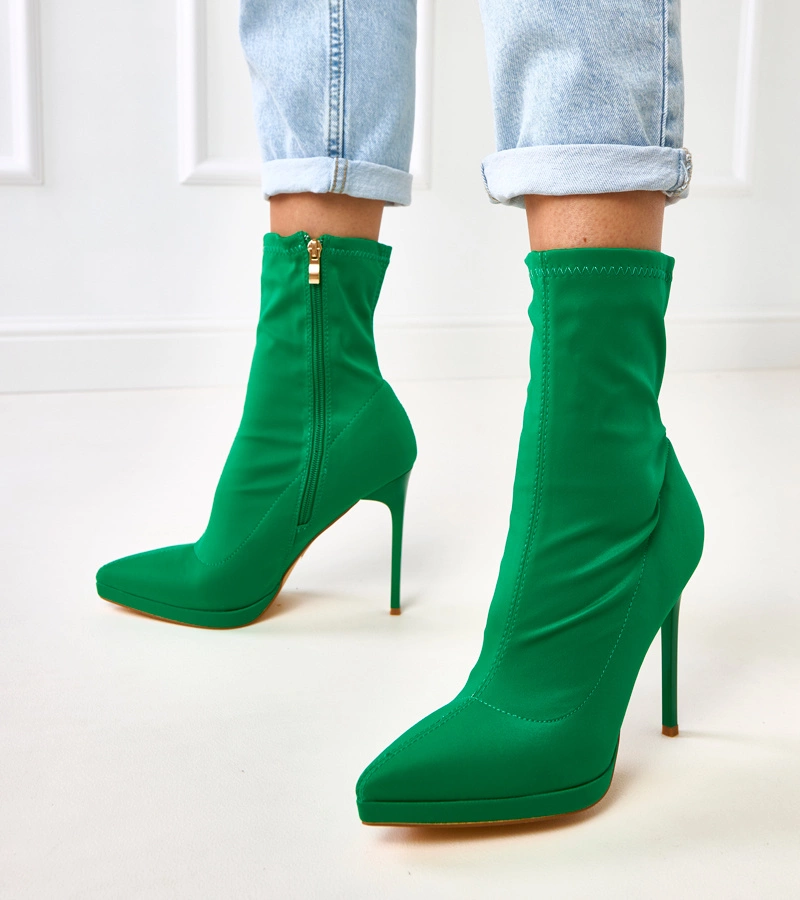 Stříbrné kotníkové boty s flitrovým zakončením na jehlovém podpatku Venda