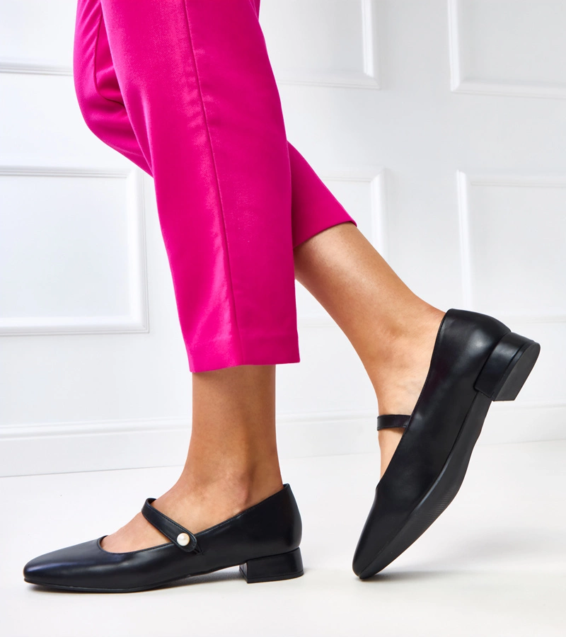 Černé lodičky s ozdobným páskem na nízkém podpatku Bakos