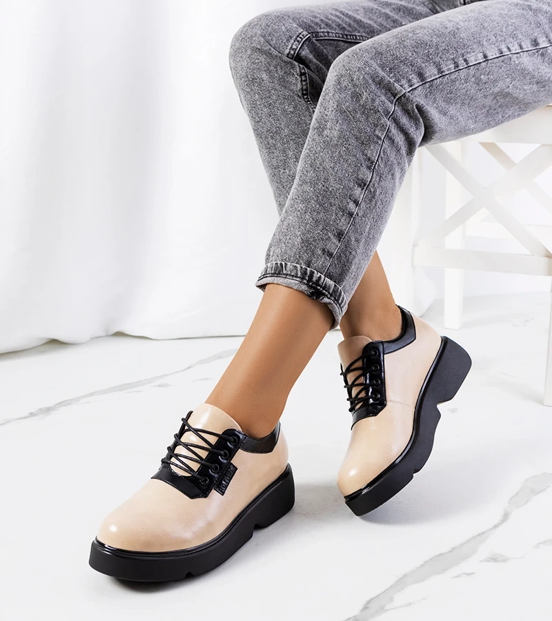 Béžové šněrovací lodičky Victoris na jehlovém podpatku