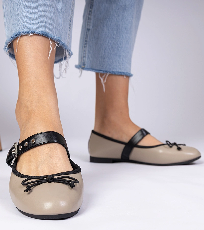 Béžové baleríny s mašlí a černou špičkou Pikolo