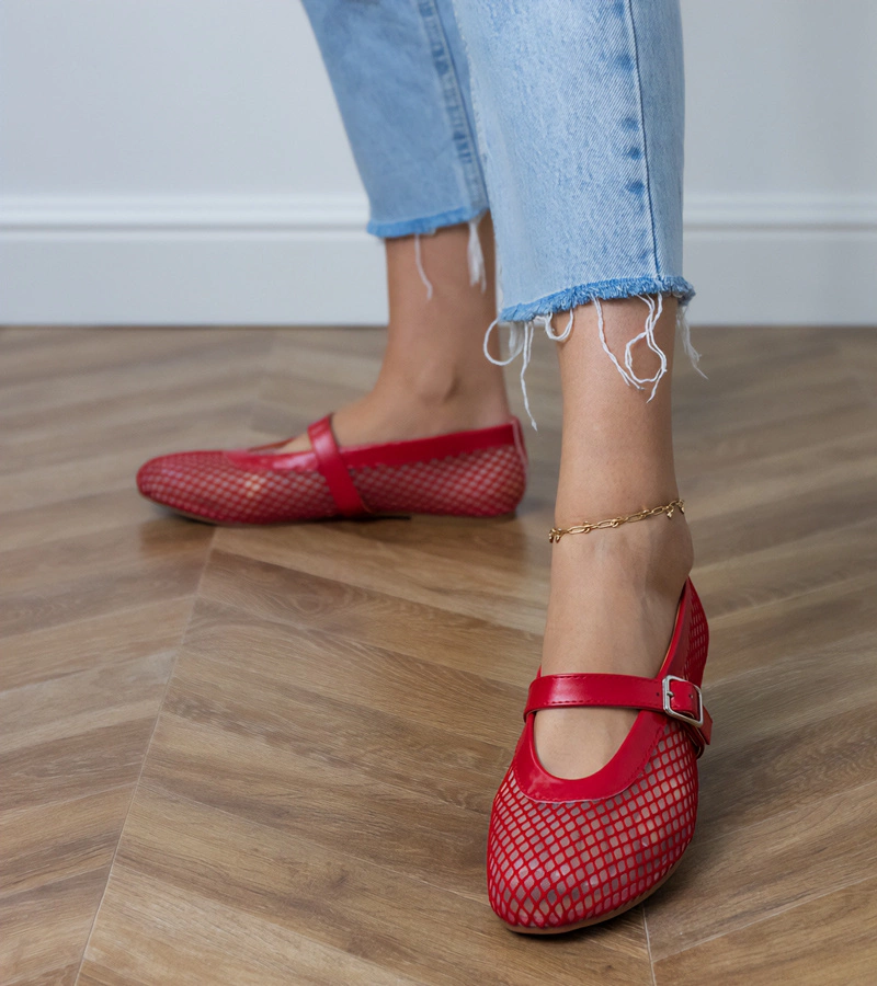 Červené baleríny s matnou úpravou na přezku Longhola