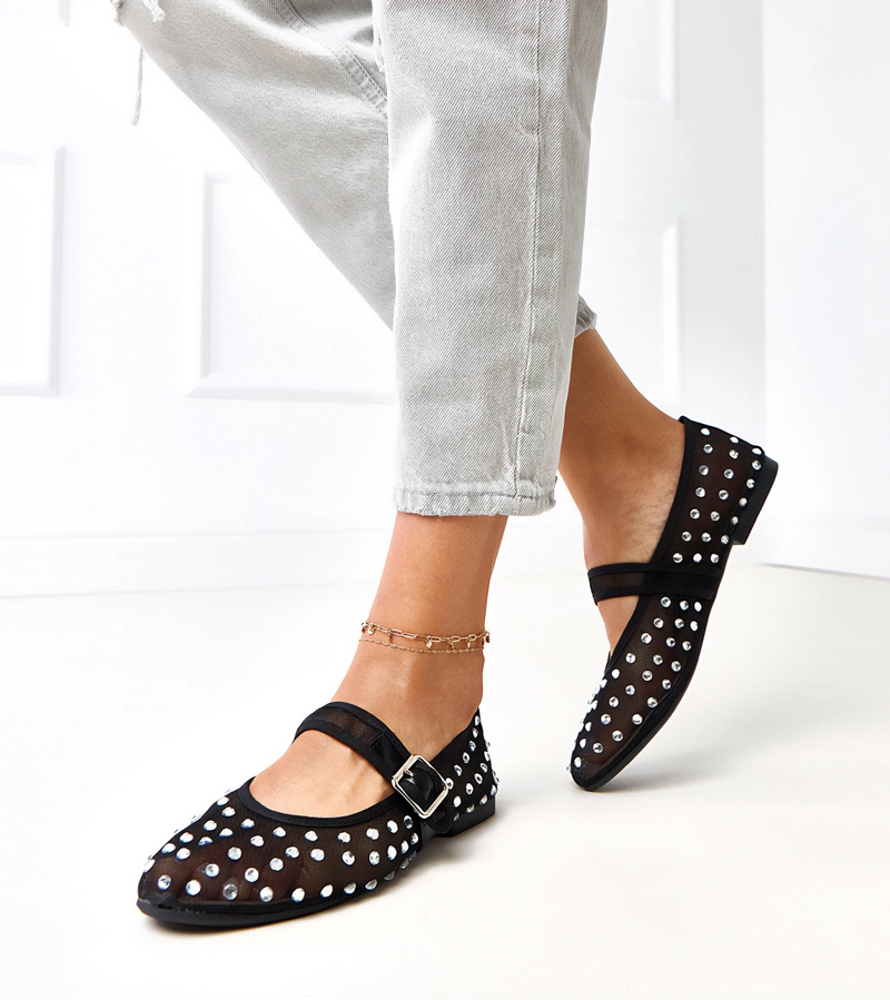 Černé síťované balerínky s ozdobnou přezkou Zerid