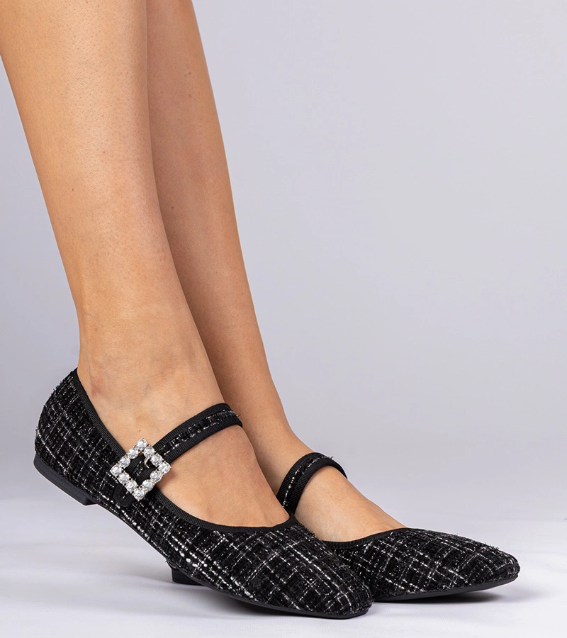 Černé balerínky zdobené sponou s krystalky Demetra