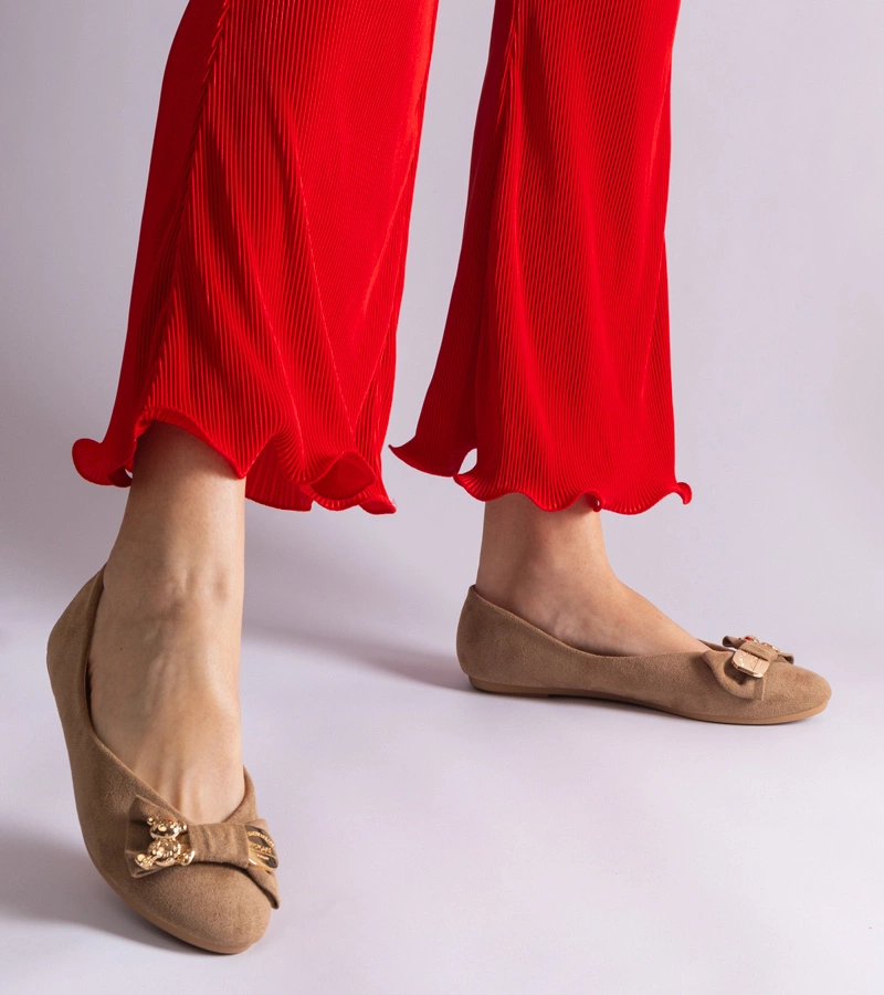 Béžové baleríny zdobené mašlí a broží Esdras