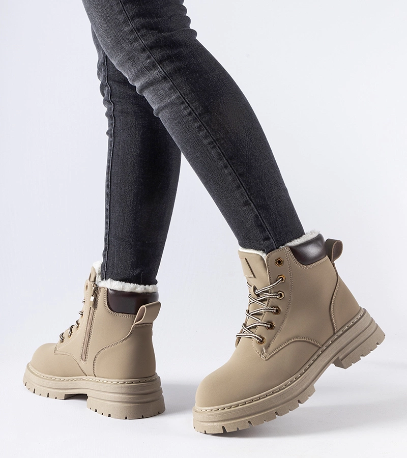 Bežcové zateplené boty s tlustou podrážkou Biagio