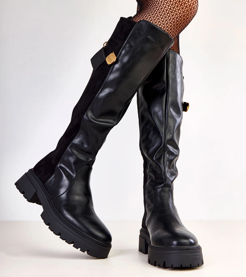 Dlouhé černé materiálové kozačky na platformě Athira.