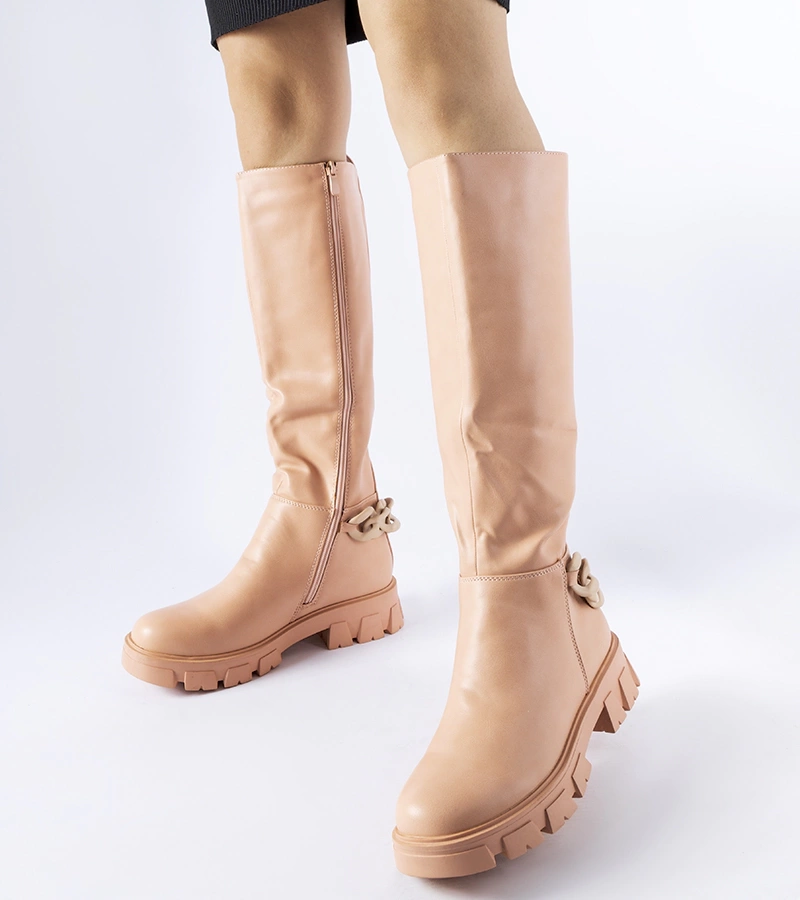 Růžové ploché kozačky se řetězem Armand