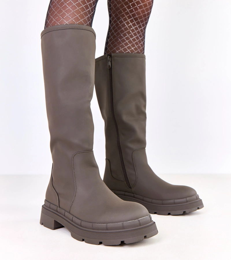 Zelené kozačky na podpatku s ozdobnou sponou Zulma