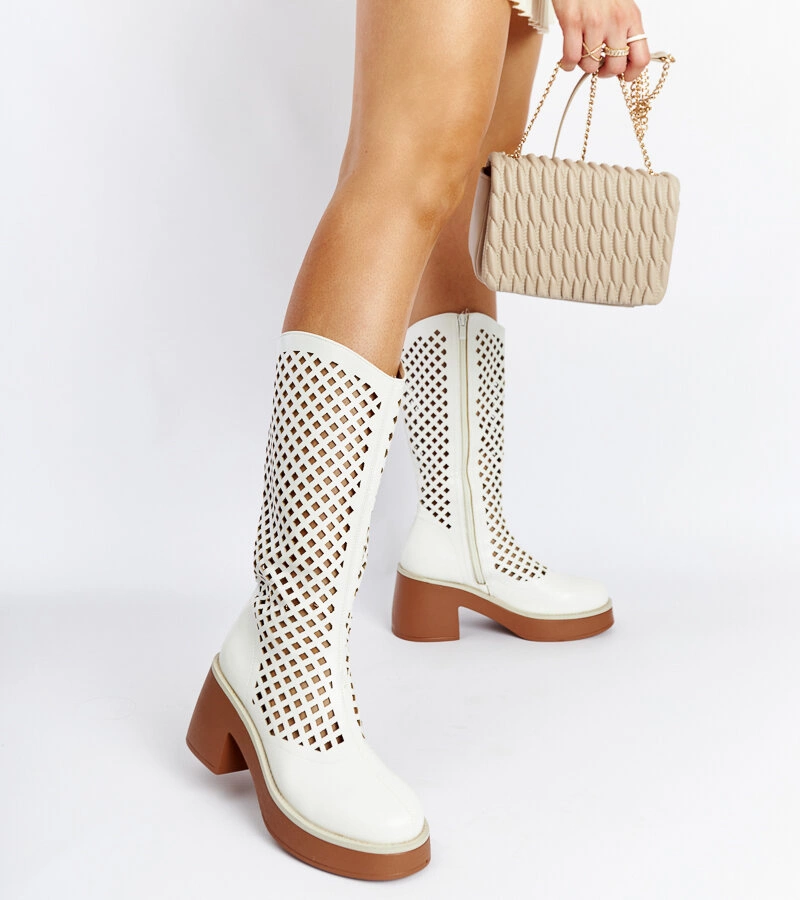 Bílé ažurové kozačky na sloupku Anahola