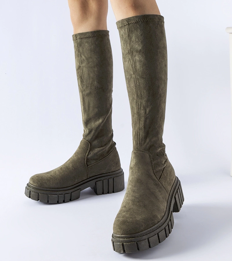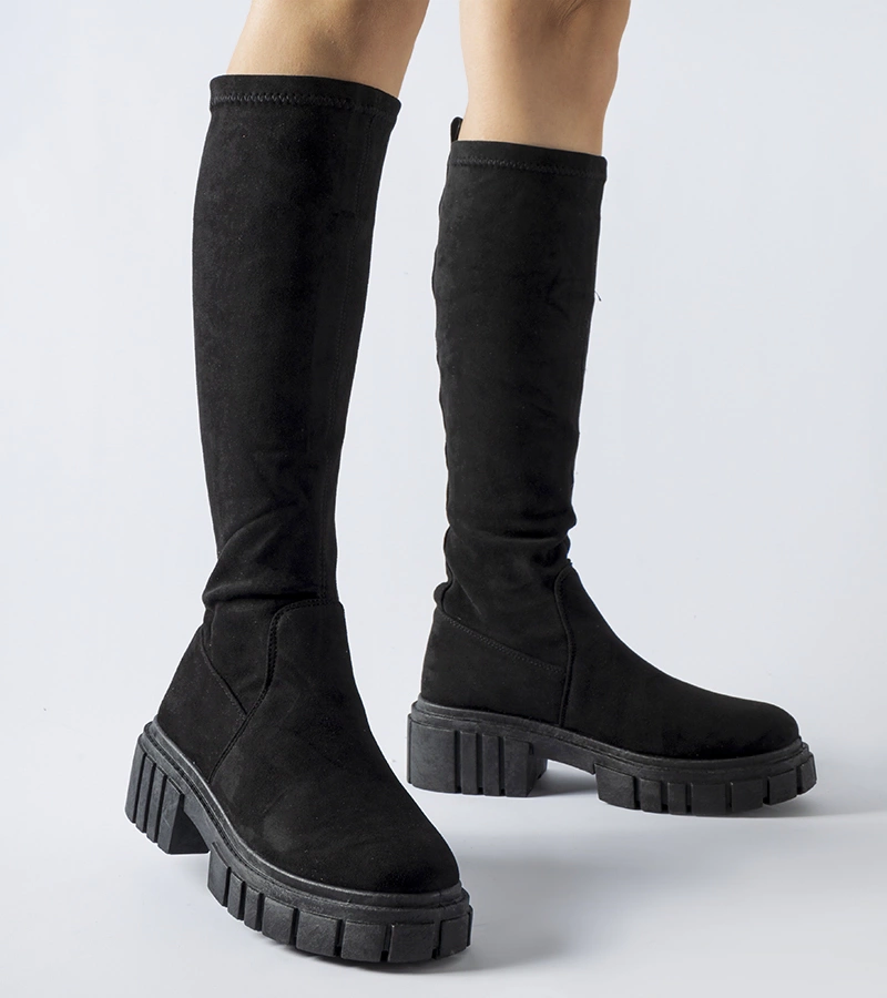 Černé dlouhé teplé kozačky z ekosuede Maurizio