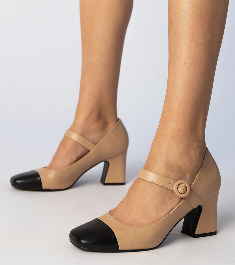 Béžové lodičky na podpatku s přezkami Eridana