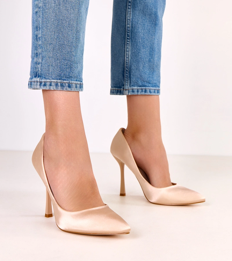 Pudrové saténové jehlové podpatky Silje