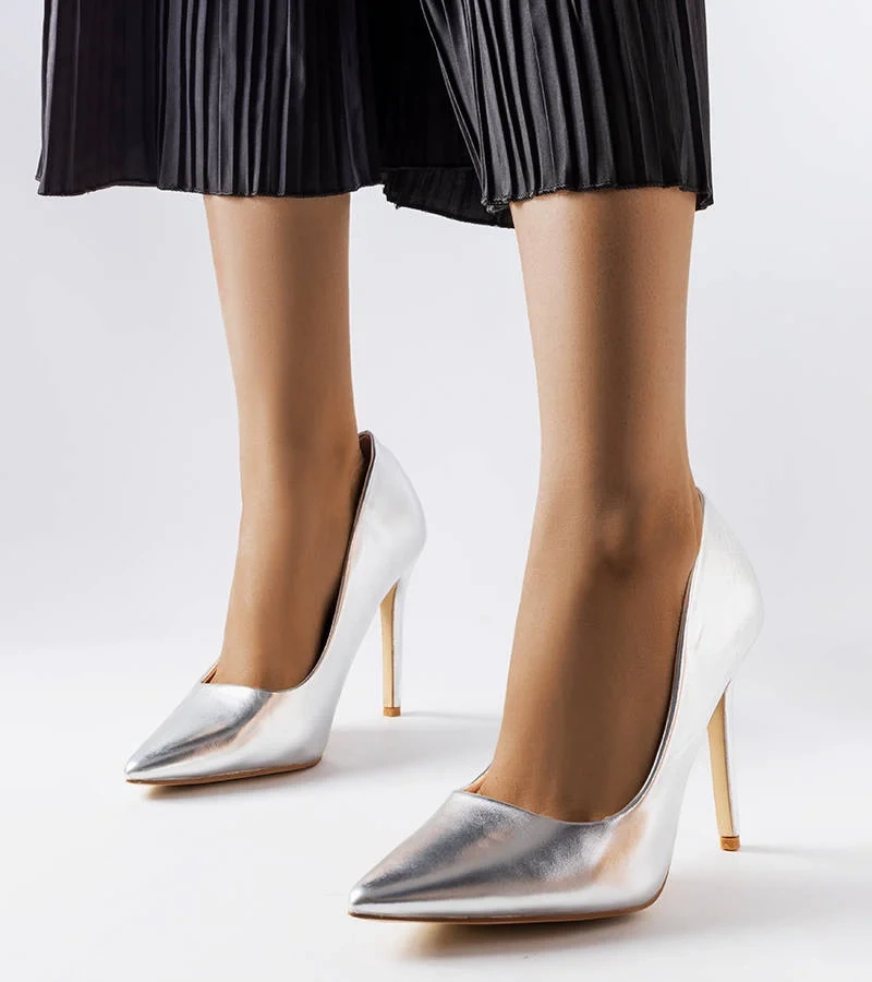 Stříbrné sandály Delinda s pásky na jehlovém podpatku