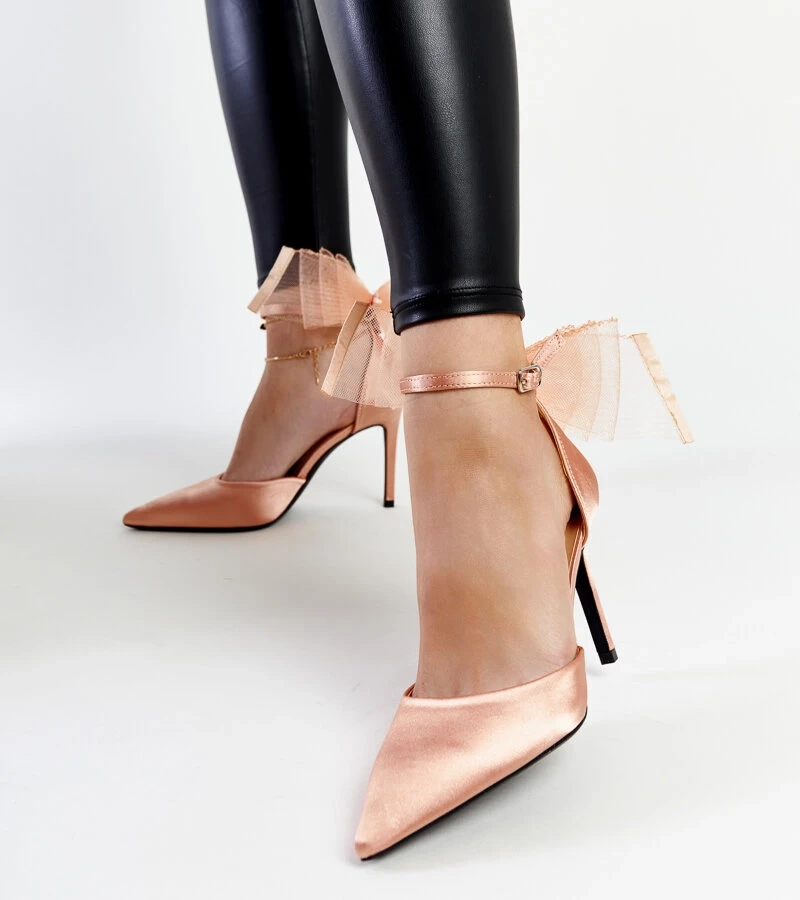 Béžové jehlové podpatky se saténovým povrchem a mašlí Mia