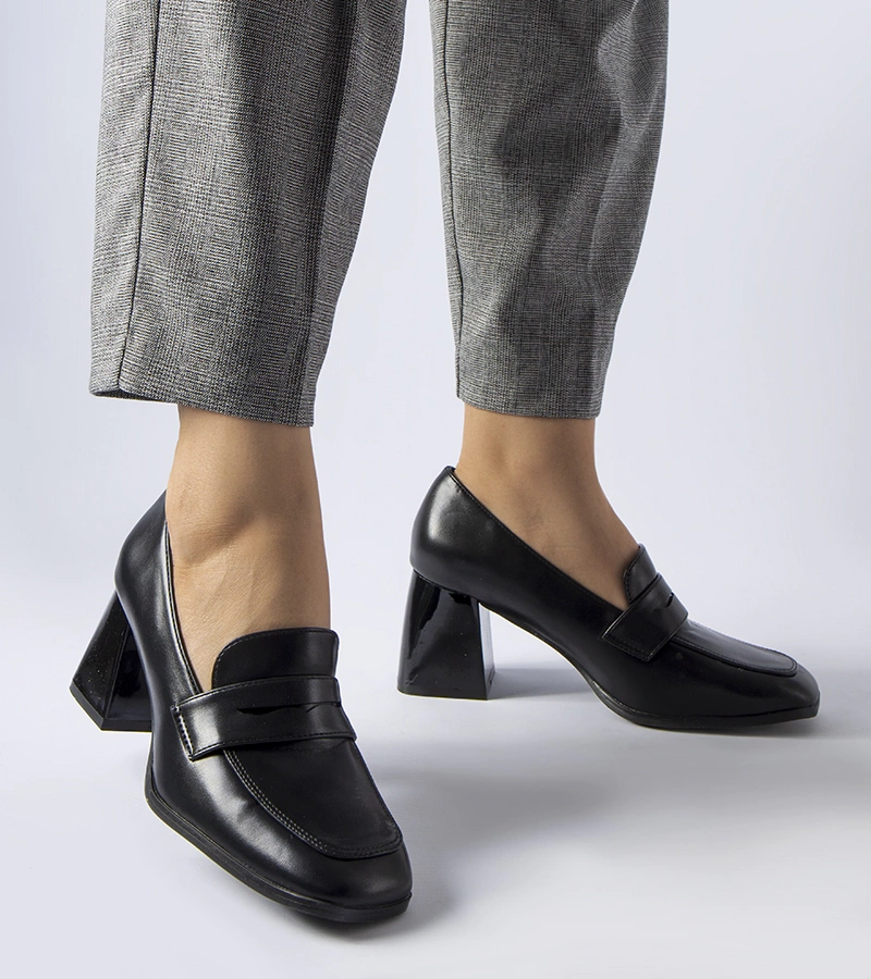 Černé lodičky na podpatku s přezkou a kamínky Vellus