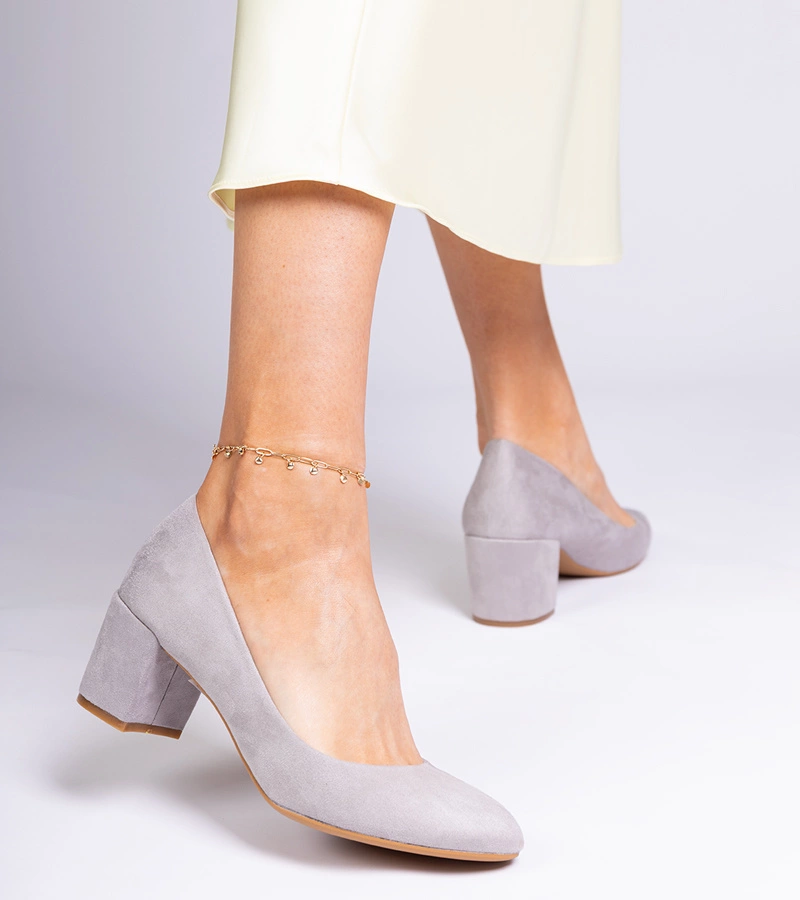 Šedé klasické lodičky na podpatku z eko semiše Telis