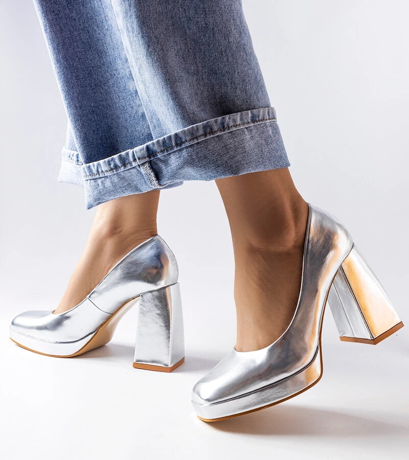 Stříbrné třpytivé jehlové podpatky Gallia