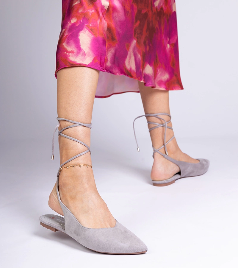 Šedé baleríny na plochém podpatku se šněrováním na kotníku Karlioz