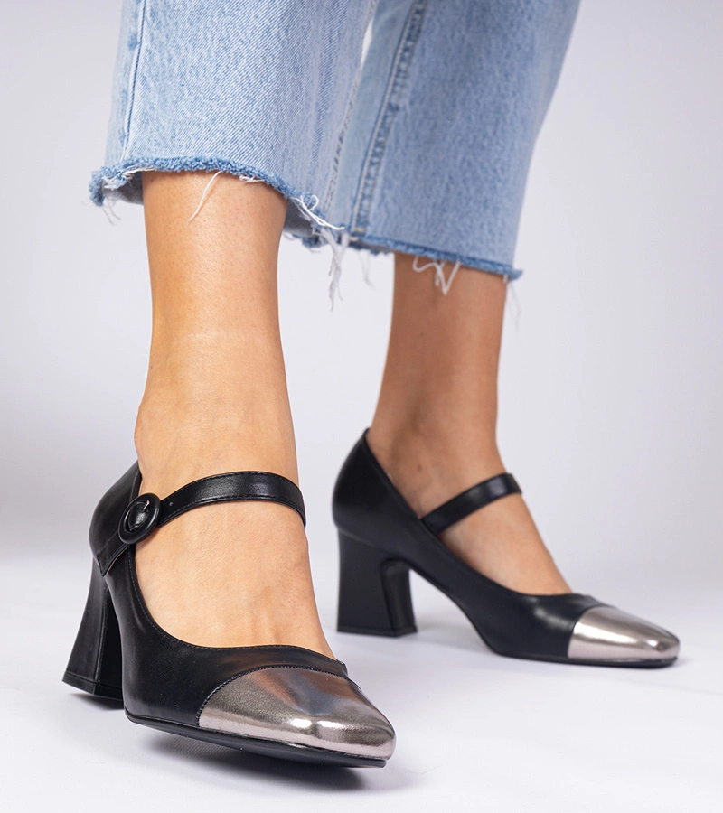 Černé dámské lodičky se stříbrnou špičkou Radora
