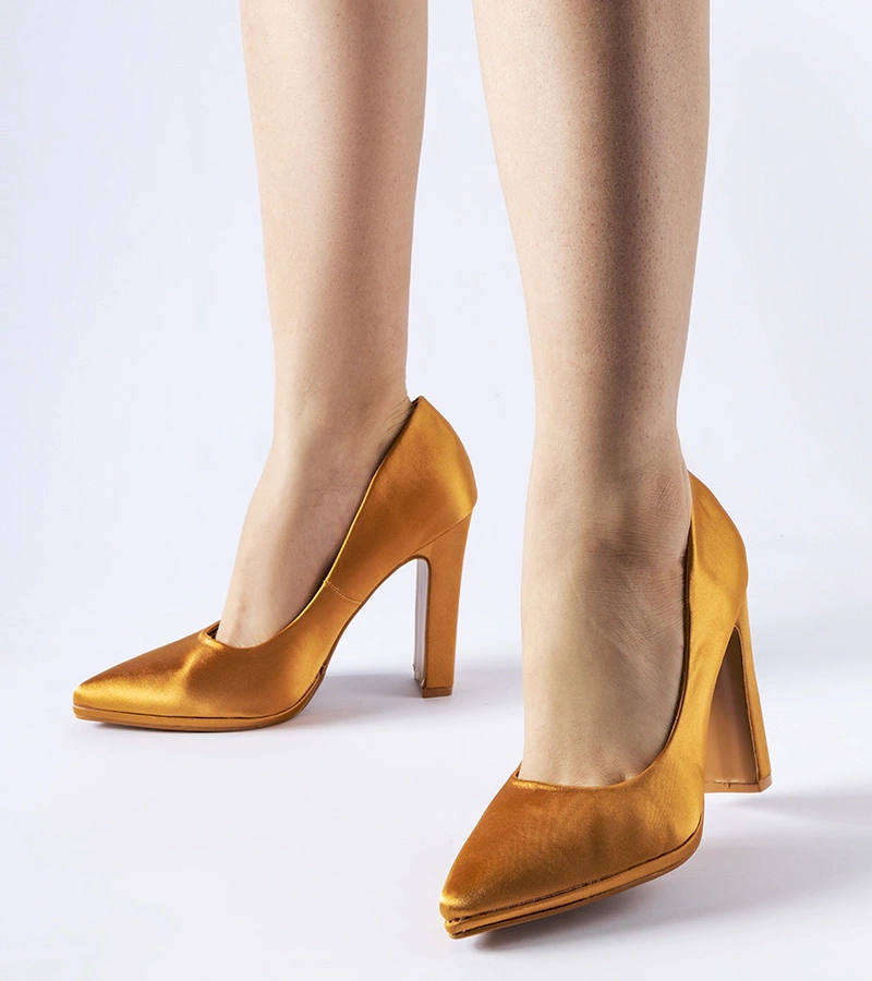 Neonově růžové jehlové podpatky se saténovým povrchem a mašlí značky Mia