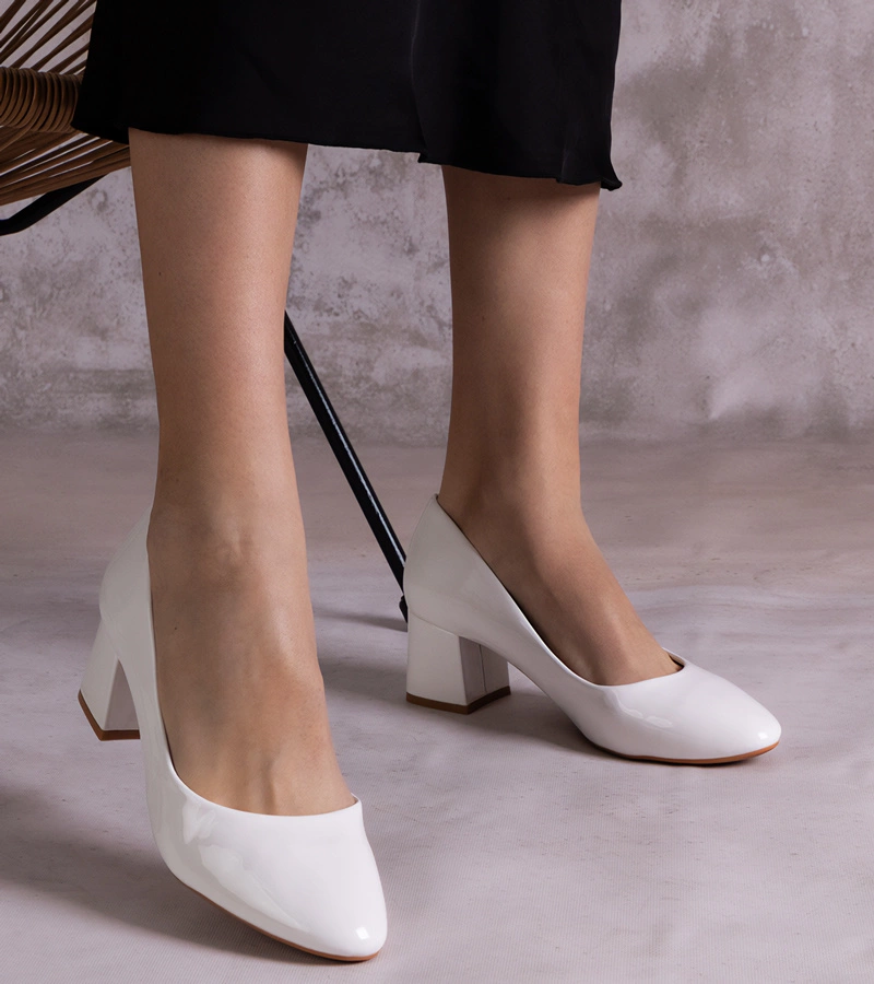 Bílé lakované lodičky na podpatku Linaka