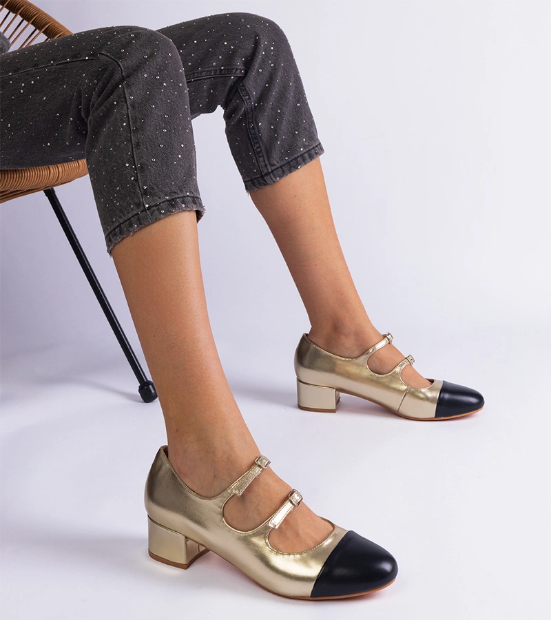 ( počet produktů: 647 )Zlaté lodičky na podpatku s černou špičkou Amelada