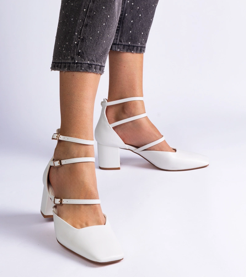Bílé lodičky na podpatku s přezkami Eridana