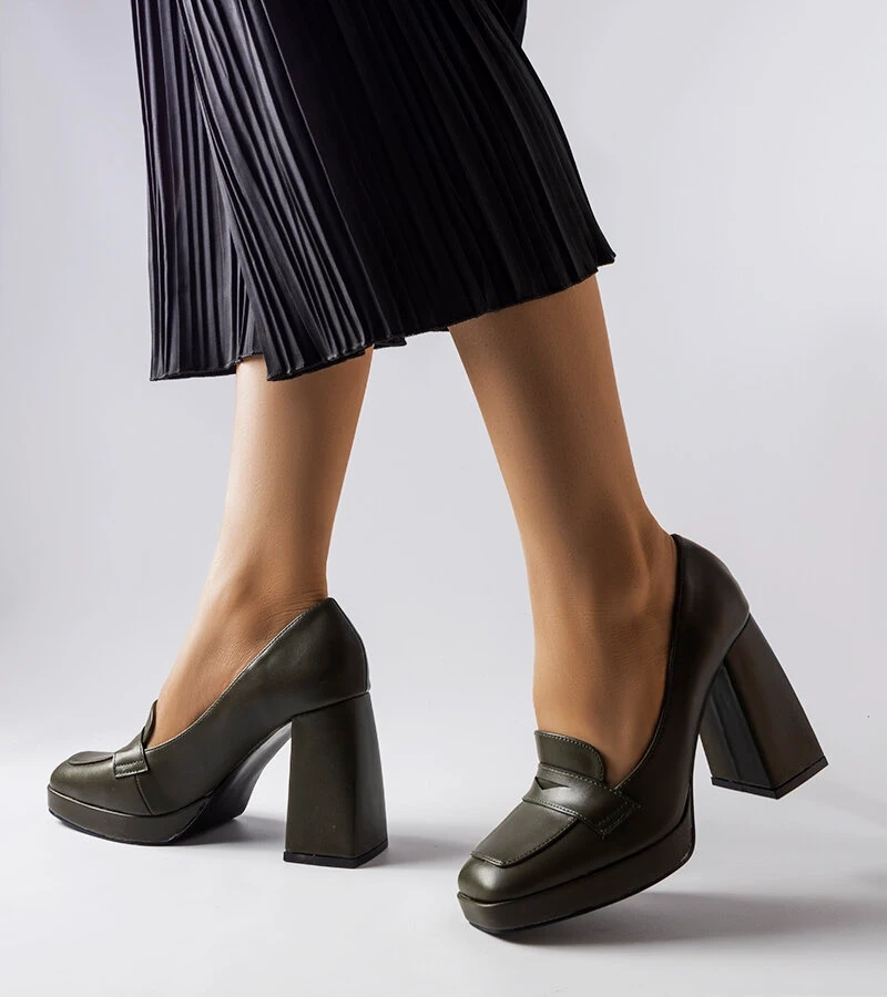 Olivově zbarvené lodičky Lowell na vysokém jehlovém podpatku