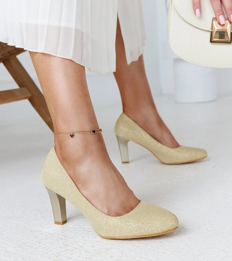 Bežové podpatky s hedvábným dokončením a zirkony Clemente