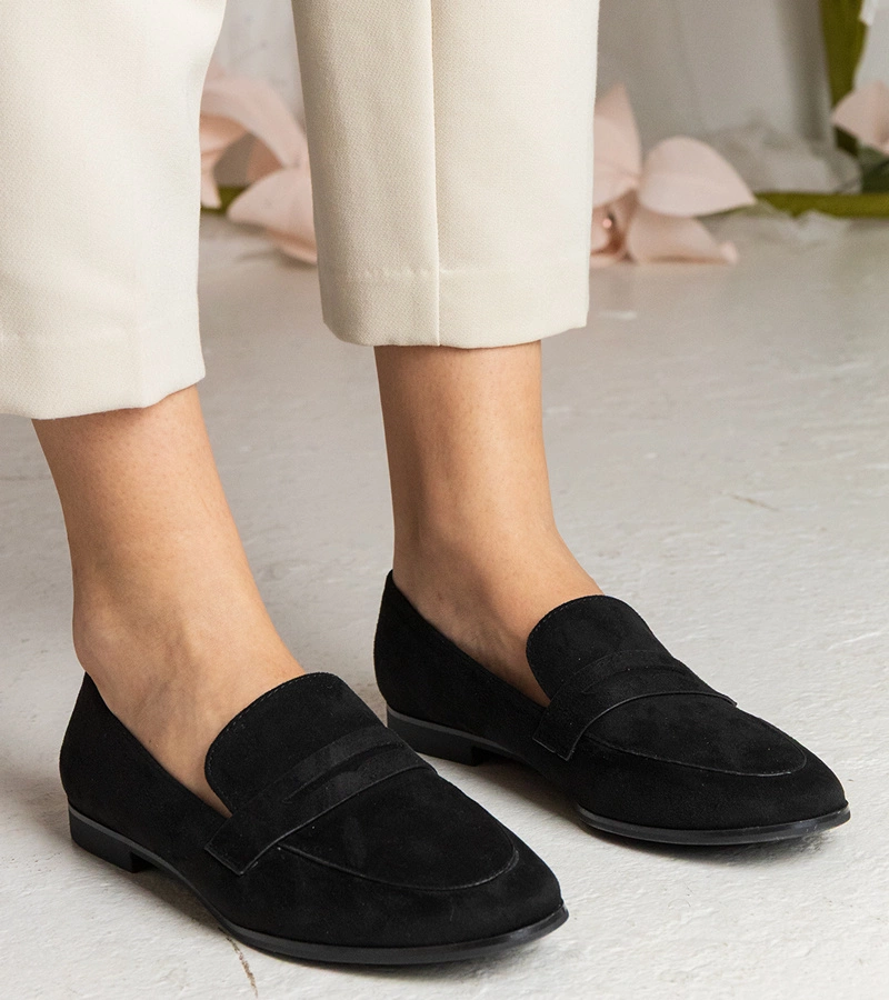Dámské černé mokasíny na klínku s matnou úpravou Sambada