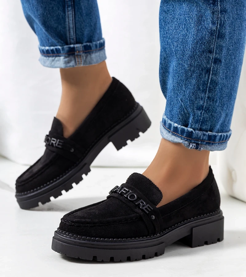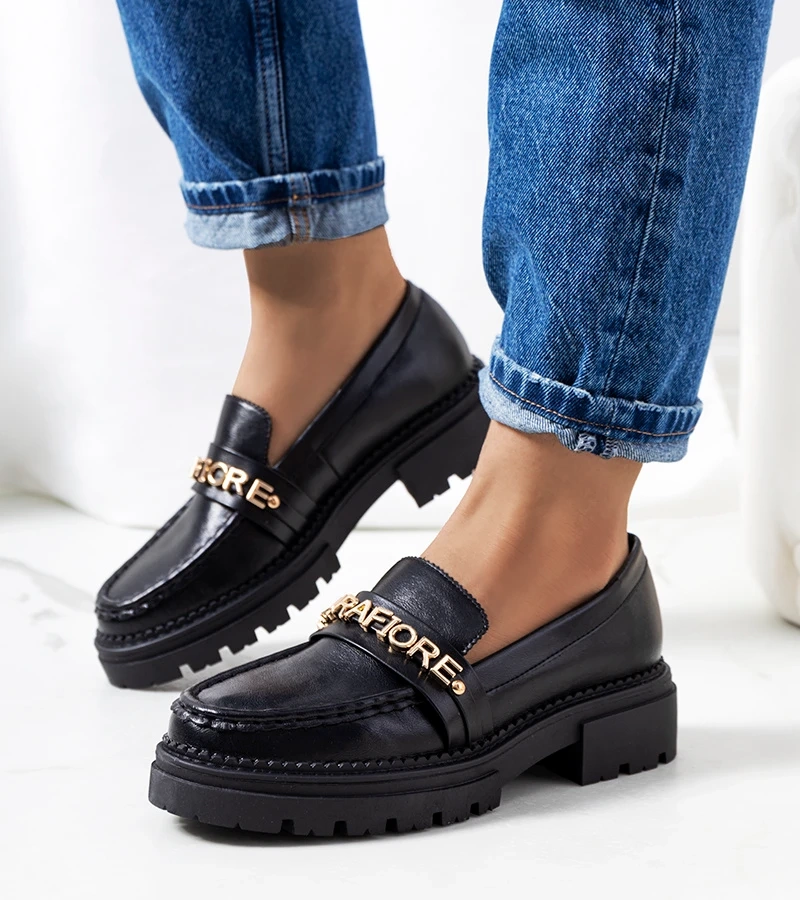Černé látkové mokasíny se zlatou ozdobou Bianca