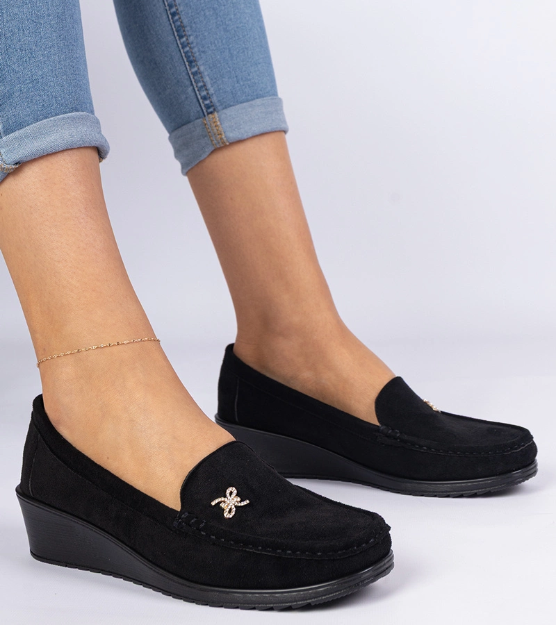 Dámské černé mokasíny na klínku s matnou úpravou Sambada