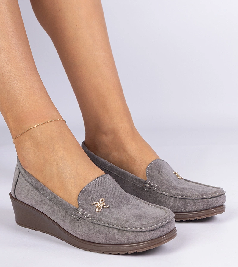 Šedé dámské mokasíny na klínku z ekosemiše Sarimi