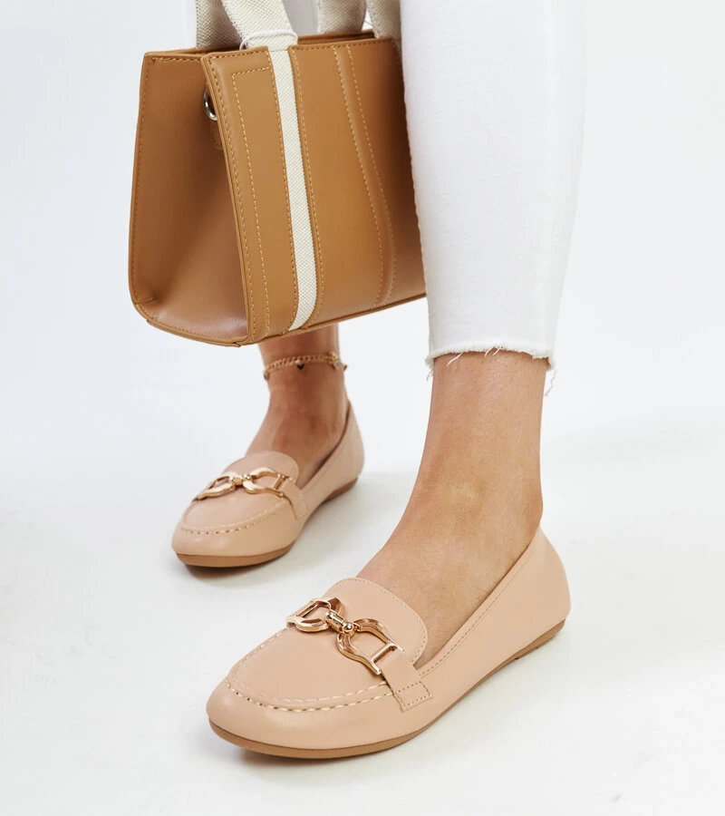Bežové mokasíny zdobené zirkony Newport