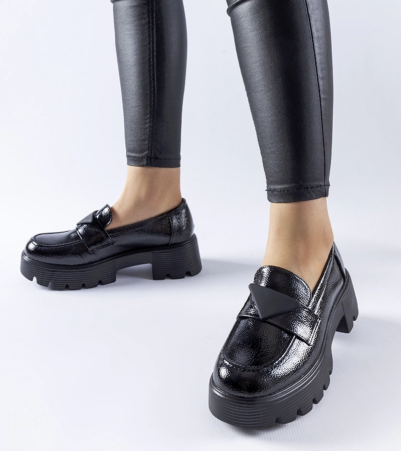 Černé mokasíny se řetízkem z ekokoženky Suelli