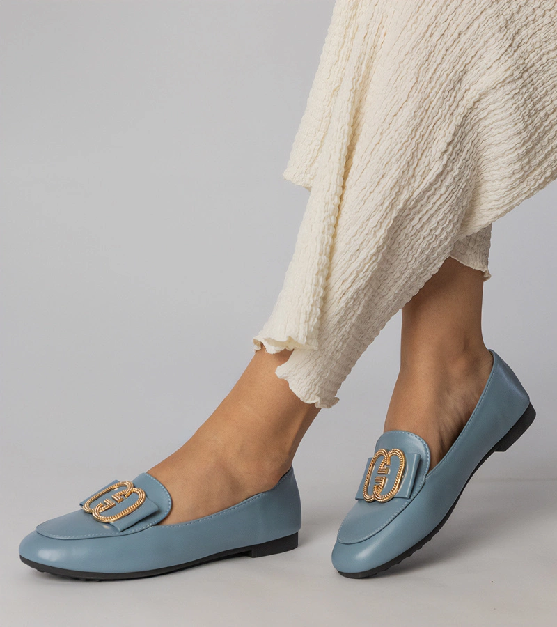 Modré dámské mokasíny se zlatou ozdobou Frada